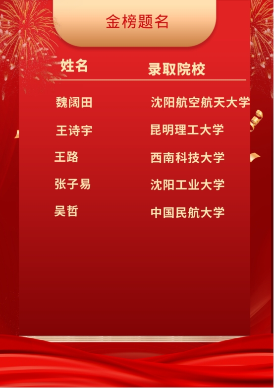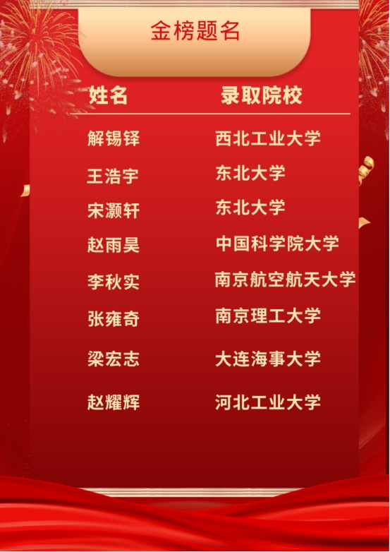 喜报频传如春水,佳音相继似花开!2024年全国硕士研究生招录工作落下帷幕,我院学子创造辉煌!多名学生被清华大学、北京航空航天大学、香港科技大学、西北工业大学、华南理工大学、北京理工大学、中南大学、东北大学等国内知名高校录取。