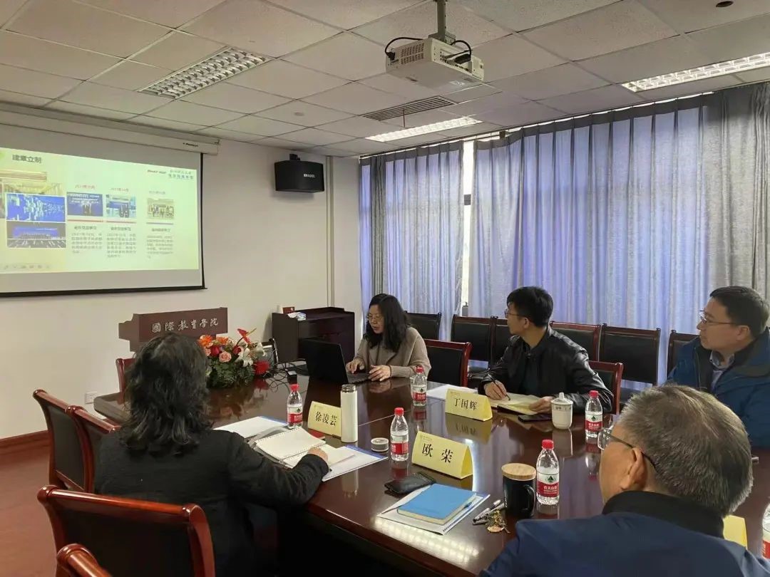 杭州师范大学哈尔科夫学院欧荣院长代表其学院对我院一行来访表示热烈欢迎,并就杭师大哈尔科夫学院办学历程、建章立制、人才培养与管理、面临困难和挑战等作了详细介绍。徐凌芸书记介绍了学院办学整体运行情况、办学经验、党建工作等。王园朝副院长、马珺副书记对教学运行机制,专业协调,学生管理等做了介绍。