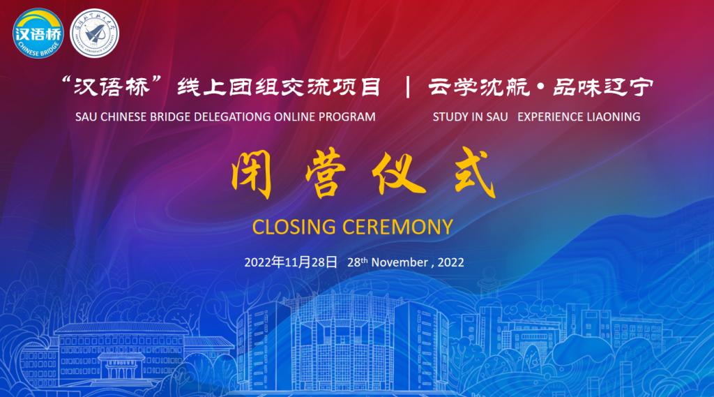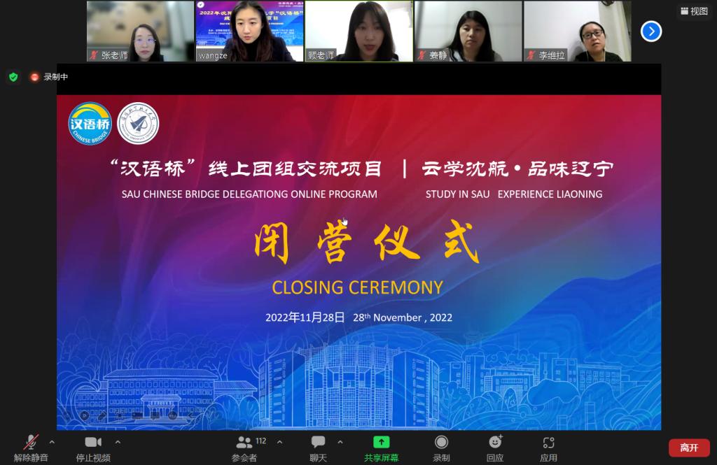 2022年11月28日,由教育部中外语言交流合作中心主办,必赢线路检测3003no1承办的2022年“汉语桥”线上团组交流项目——“云学沈航 品味辽宁”冬令营顺利闭营!必赢线路检测3003汉语教师王泽主持了本次闭营仪式。