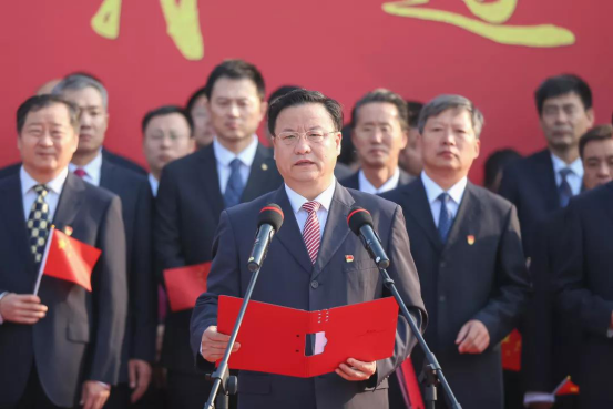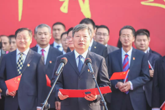 上午7时30分,在铿锵有力、整齐划一的脚步声中,国旗护卫队70步正步护送五星红旗走上升旗台。五星红旗冉冉升起。在场的领导及师生代表庄严站立,国歌奏响,全场千余名师生面向国旗齐声高唱国歌,激情澎湃!