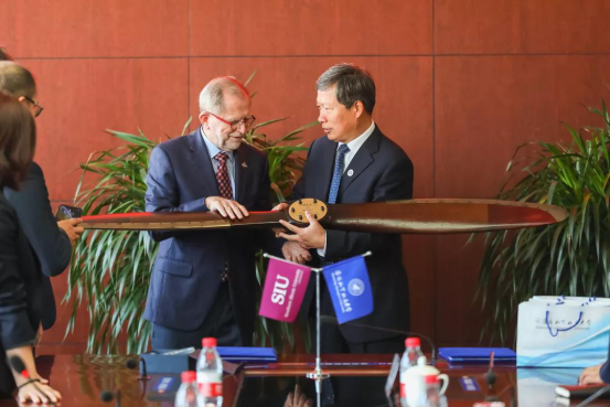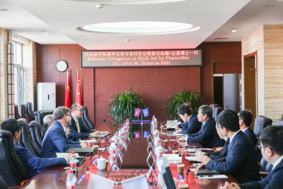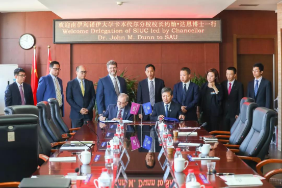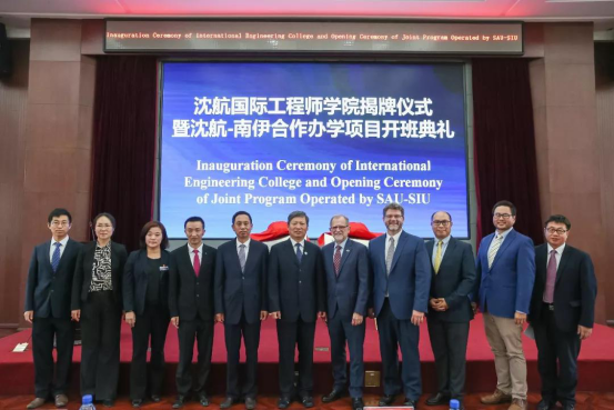 Dr. John M. Dun校长一行参加了必赢线路检测3003no1国际工程师学院揭牌仪式暨沈航—南伊合作办学项目开班典礼。沈航与美国南伊利诺伊卡本代尔分校联合举办的飞行器动力工程专业于2018年获教育部审批,2019年首批招生,目前在校学生68人。项目的开展对沈航高等教育国际化产生了深远的影响,并成为提高沈航教育办学质量和水平的有效途径。