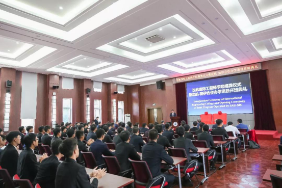 国际工程师学院揭牌仪式暨沈航——南伊合作办学项目开班典礼在行政楼106会议室举行。会议由副校长佟刚主持。Dr. John M. Dun 向与会嘉宾和学生介绍了南伊利诺伊卡本代尔分校发展历史及学校优势专业,并作了生动的学业介绍,对未来赴该校学习的学生表示热烈欢迎,鼓励学生们多用英语沟通交流,并向同学们表达了美好祝愿。孙小平介绍了沈航国际化合作办学发展情况及中外合作项目优势,并提出要抓住当前国际合作办学的历史机遇,坚持以引进优质教育资源、以提高教育竞争力为核心,以培养高素质、国际化人才为宗旨,积极开展高质量的中外合作办学。同时希望同学们刻苦学习,不断进取,借助联合培养项目平台,享受两校高质量的国际优质师资资源。孙小平和Dr. John M. Dun共同为国际工程师学院的成立及沈航——南伊合作办学项目的建立揭牌。相关职能部门、机电工程学院、航空发动机学院等单位负责人参加了揭牌仪式。