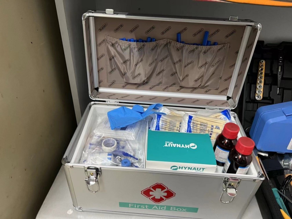 紧急医务室“爱心驿站”,配备组合式医用急救包、应急药品、防疫物资等应急物资,并放置应急用床,为受伤学生提供应急帮助。
